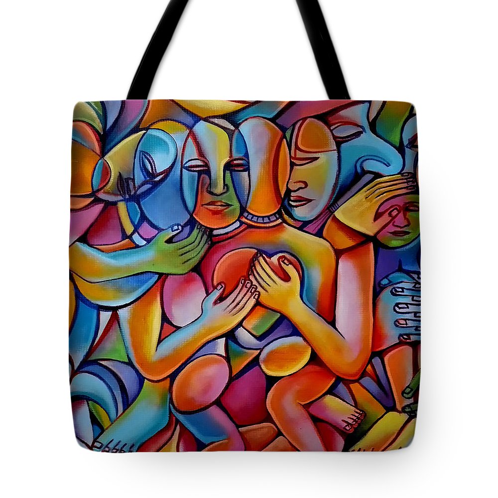 Purchase a tote bag featuring the painting "Love" by Arison Kul. Our tote bags are made from soft, durable, poly-poplin fabric and include a 1" black strap for easy carrying on your shoulder. All seams are double-stitched for added durability. Each tote bag is machine-washable in cold water and is printed on both sides using the same image.